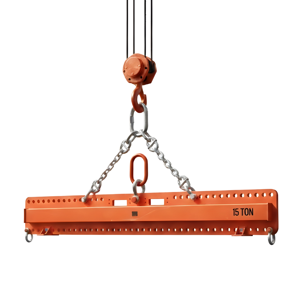 In application, the WELS-LB-15TON beam excels when moving heavy machinery, structural modules, shell frames, prefabricated assemblies, long steel sections or bundled materials. Its fixed-spread geometry ensures the slings remain within permissible limits, minimising load swing, reducing stress on the crane and simplifying load control. Riggers benefit from consistent behaviour across each lift—whether lifting into place, travelling horizontally, or lowering for installation.