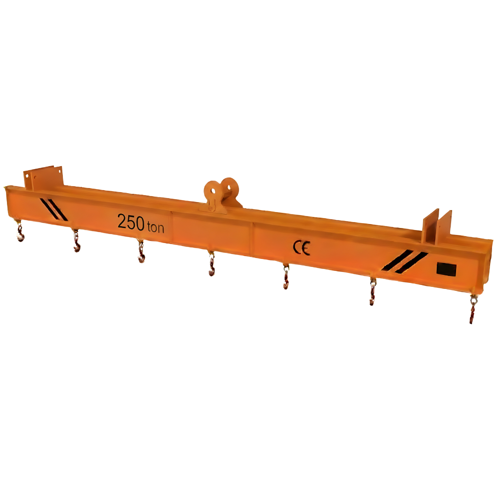 At the top of the beam is a heavy-duty central lifting assembly built to manage enormous lifting forces. Modeled after the robust top-link structure visible in the image, this connection point ensures a secure and balanced attachment to overhead cranes or large hoists. Even when lifting the full 250-ton capacity, the assembly maintains consistent stability, minimizing sway and ensuring predictable motion—an essential requirement when handling loads that cannot afford any room for error.